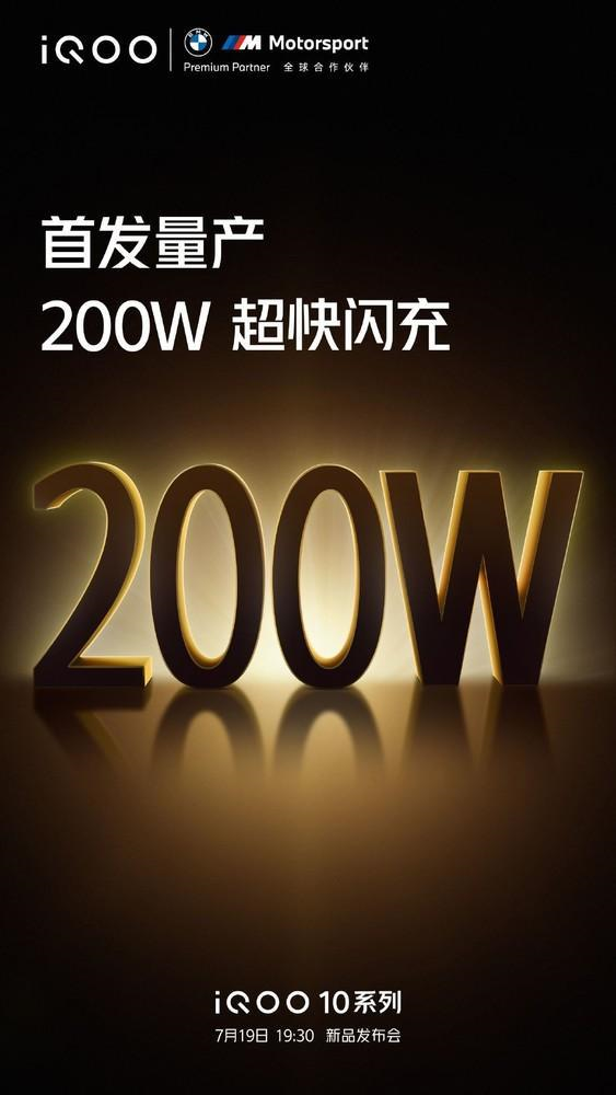 旗下的iQOO 10系列将首发量产200W超快闪充:“我们走了无数步,只为你能够快人