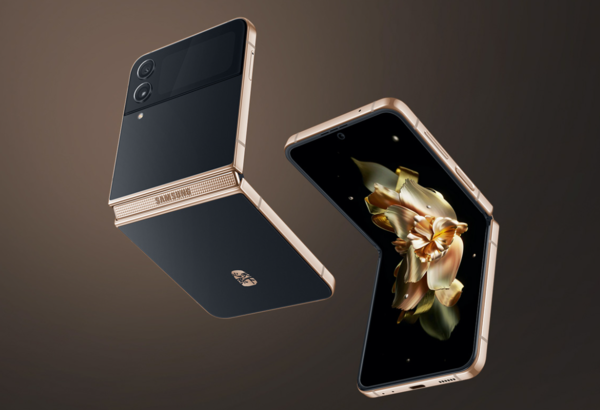 三星W23 Flip的配色为沉稳大气的熠金黑,传承熠金黑玻璃背板和金色鎏光的装甲铝边框,背板融入“心系天下”金色徽标;亮金色的金属边框与璀璨的四棱方形宝石纹路的铰链外壳相得益彰,金色鎏光的装甲铝边框大气优雅,硬朗材质坚固耐用,保护内部结构的同时,勾勒出简洁的线条。打开内屏,三星将贝壳开启的动态与上下屏幕打开的动作结合,展开时亮光渗透出来。