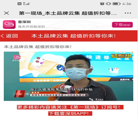 活动期间易修易购中航鼎城店作为重点品牌活动分会场,第一现场、财经频道等多家官方媒体到店进行采访报道,同时零售协会,天虹商场,科大讯飞厂家以及多家公众媒体对易修易购称赞有加并进行自主宣传,线上累计曝光达10万+,深度拓展易修易购品牌知名度。
